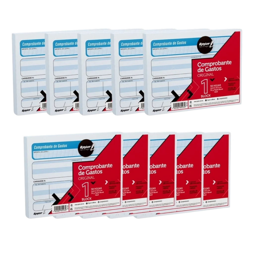 10 Block Comprobante De Gastos Rayter Azul 50 Hojas C/u