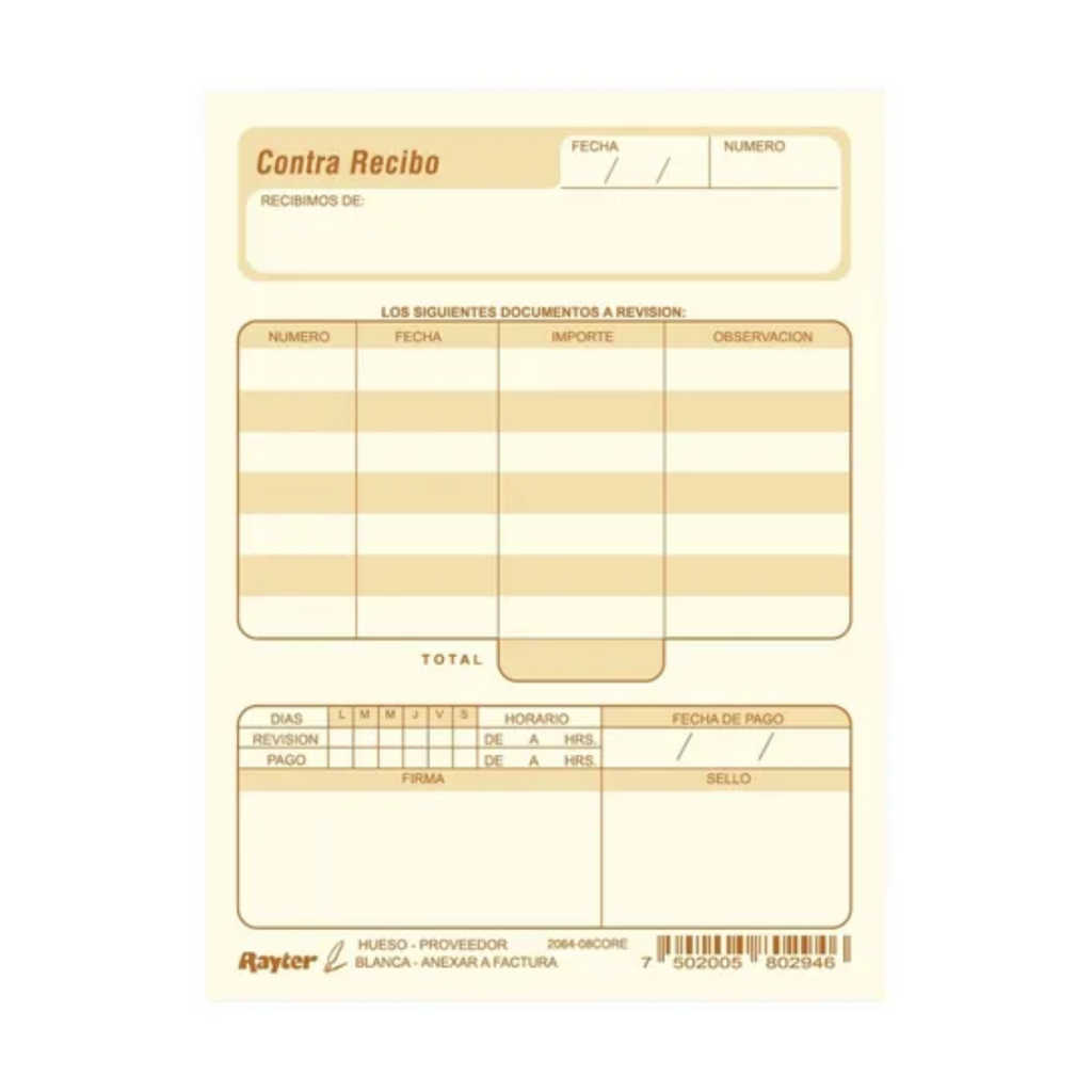 El Block Contra Recibo Rayter es una herramienta útil para registrar transacciones y comprobantes.