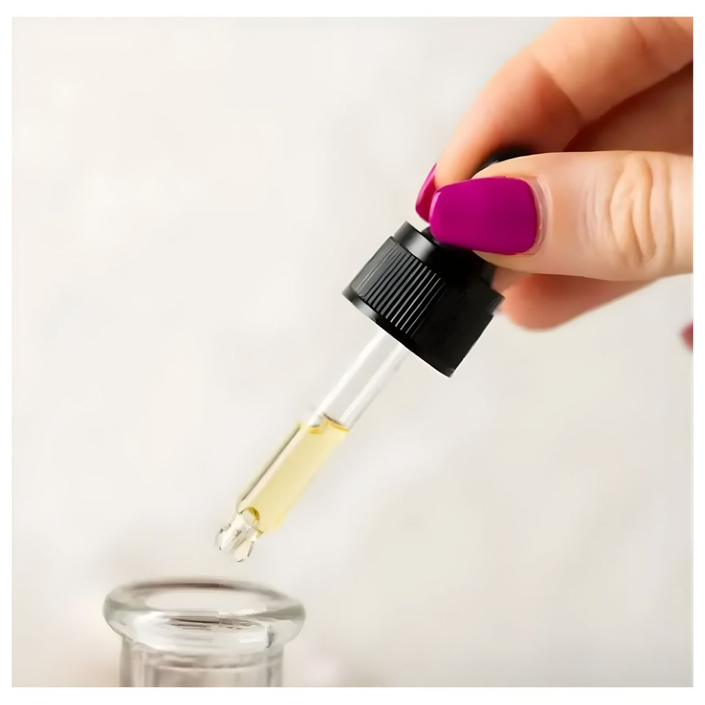 Cada frasco incluye tapa hermética con pipeta de vidrio y bulbo (vulva) en color azul o negro, según tu elección. Gracias a su gotero preciso, es perfecto para dosificar líquidos de manera controlada y limpia.