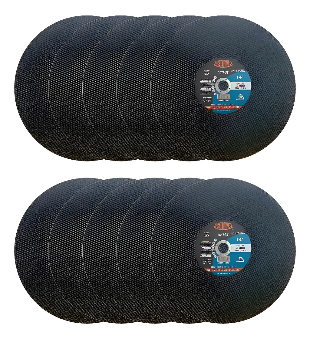 Diez Discos Abrasivos 767 Austromex Metal Inoxidable para Corte de perfiles y cualquier material hueco, 350 x 2.5 x 25.4 mm