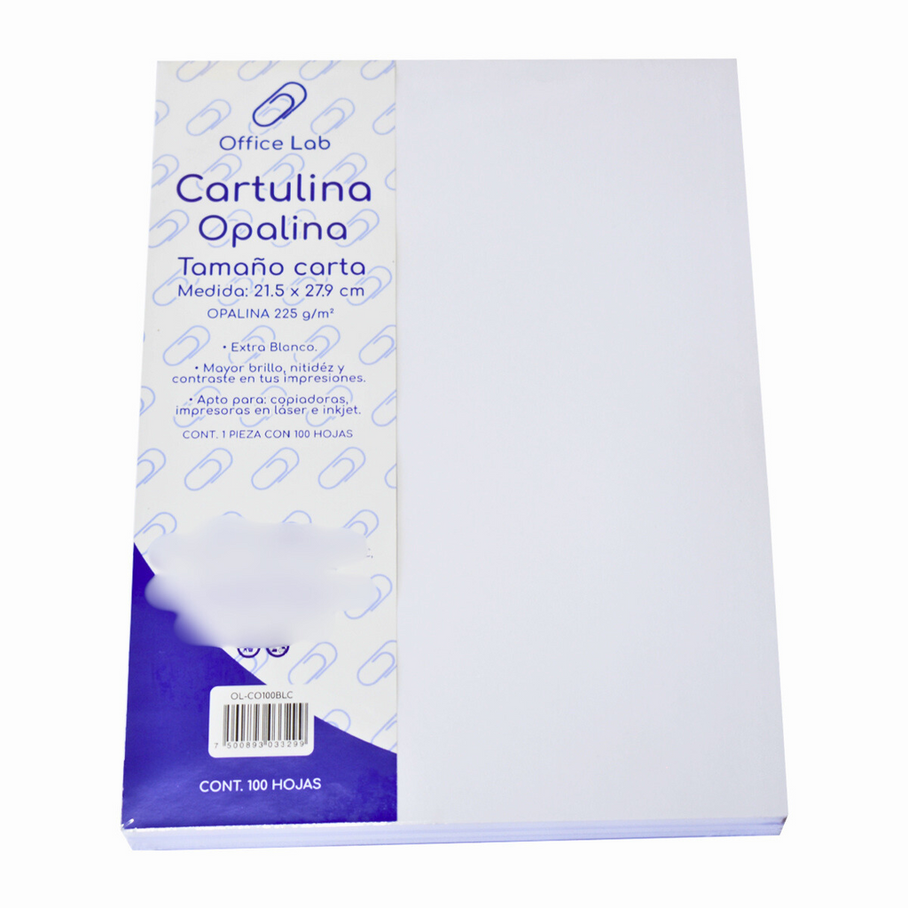 100 Hojas Cartulina Opalina Office Lab Tamaño Carta 225gr