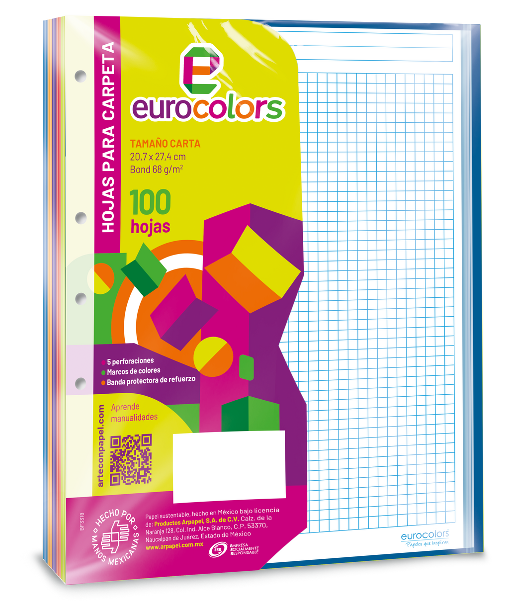100 Hojas Repuesto Carpeta Eurocolors Cuadro Chico Carta