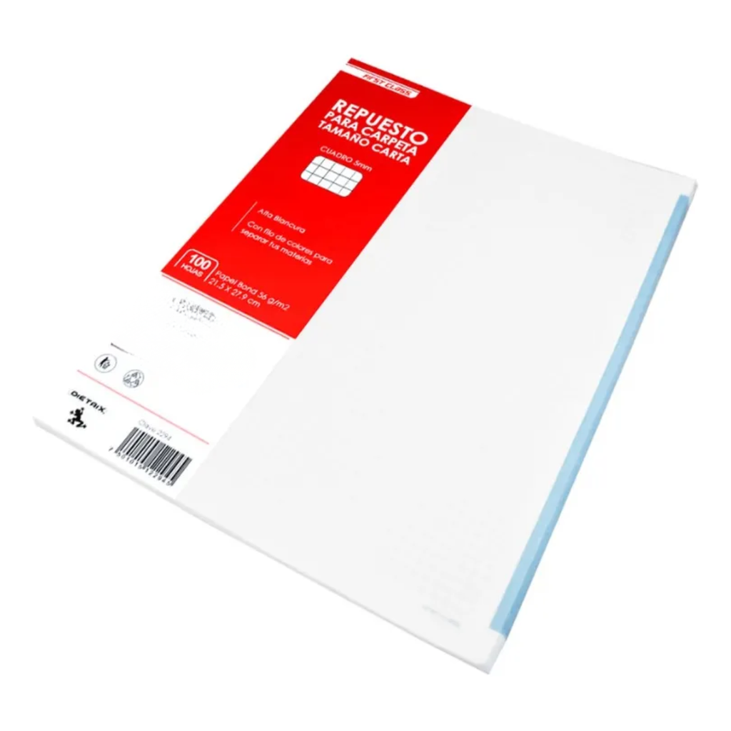 100 Hojas Repuesto Carpeta First Class Carta Cuadro Chico