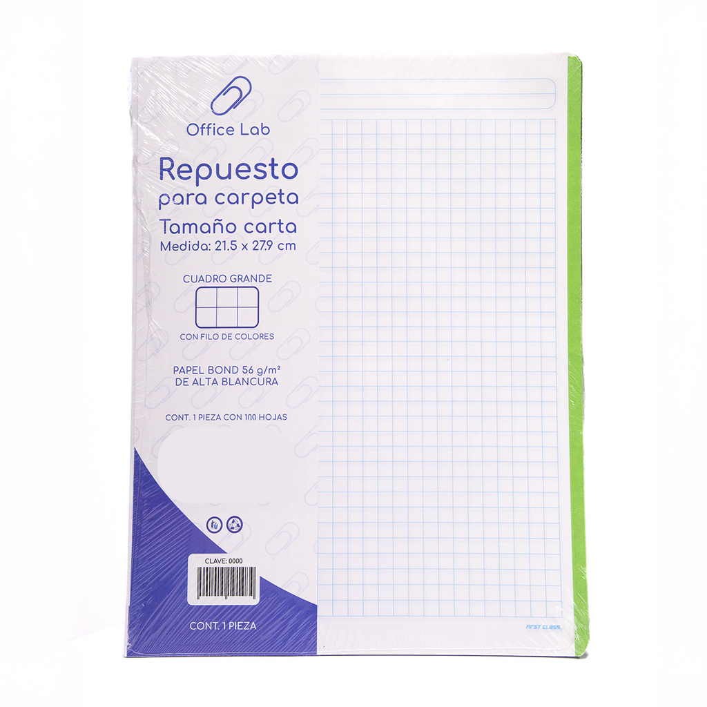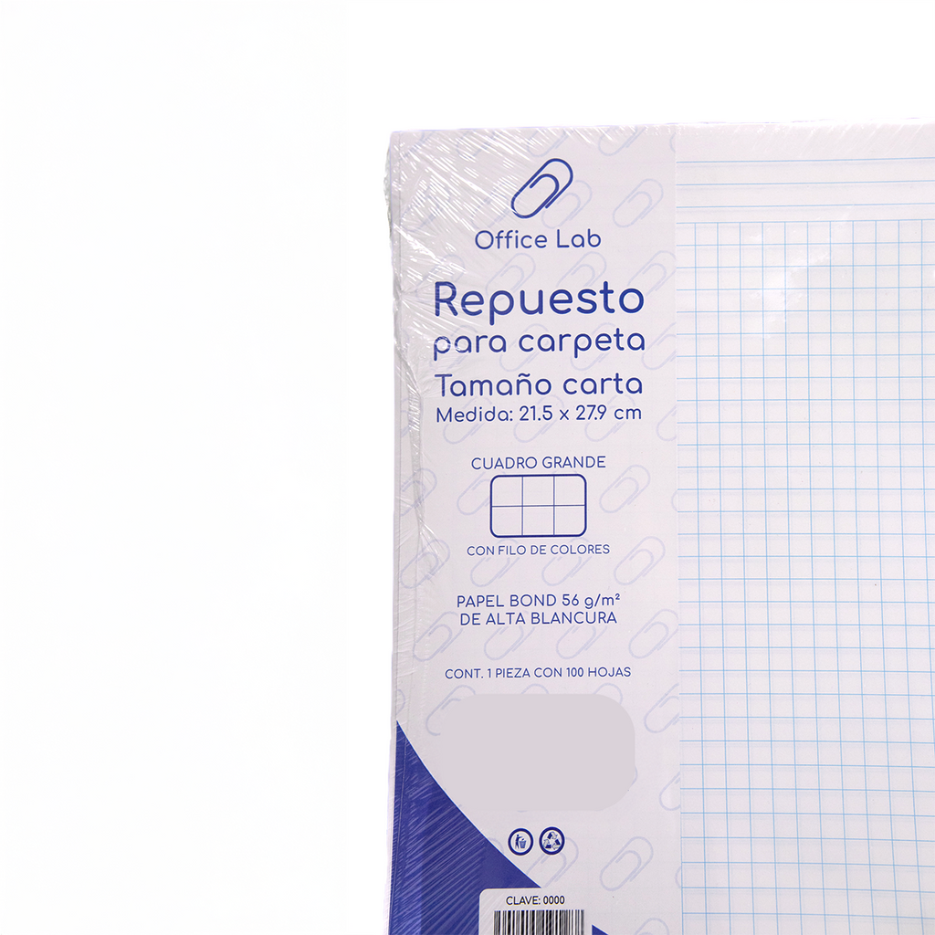 100 Hojas Repuesto Carpeta Office Lab Carta Cuadro Grande