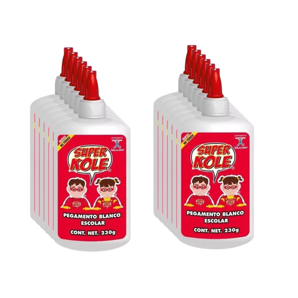 12 Piezas Pegamento Blanco Escolar Super Kole Kola Loka 230 Gramos Cada Uno