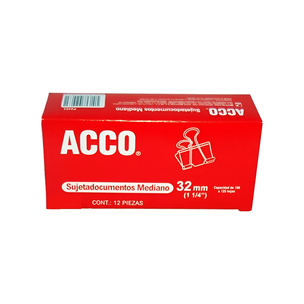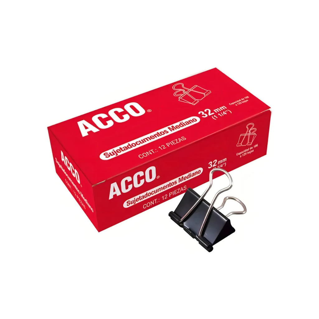 12 Sujetadores Mediano 32mm Acco Clip Sujeta Documentos