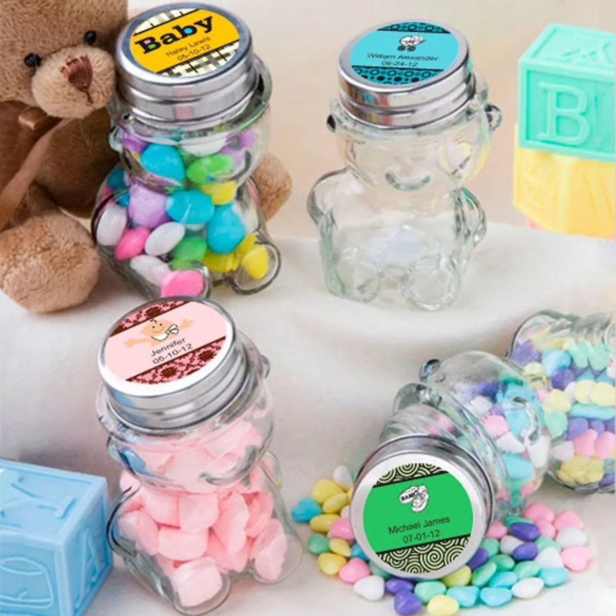 12p Frasco Vidrio Osito Dulcero Regalo Bautizo Recuerdo