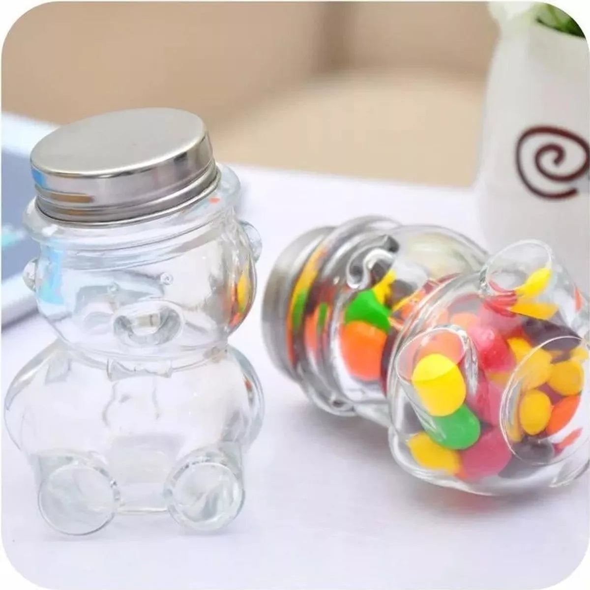 Los Frascos con Forma de Oso 80ml tienen muchas aplicaciones. Son ideales para tus fiestas como decoración. También puedes usarlos para envasar conservas, mermeladas, especias y mucho más. Los Frascos con Forma de Oso 80 ml también se usan para decorar, puedes ponerles velas, utilizarlos como dulceros y muchas cosas mas. No esperes mas y adquiere tus Frascos en Forma de Oso 80 ml ya.