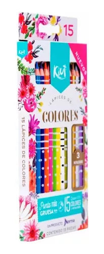 Colores Kiut 15 Unidades, caja con 15 piezas de colores suaves y durables, su punta gruesa los hace más resistentes y durables. La caja contiene 12 colores brillantes y 3 piezas de colores metalizados, ¡la combinación perfecta para dar un toque original a tus creaciones!