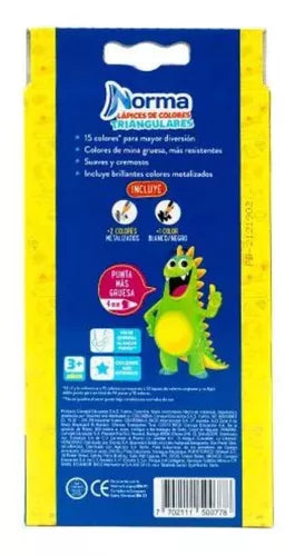 15 Lapices Colores Norma Triangular Punta Gruesa Escolar