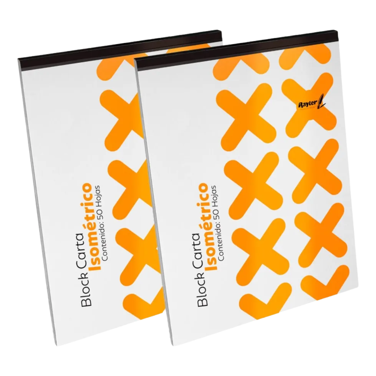 Datos del producto: 2 Block isométrico No. de hojas: 50 hojas. por cada block Material: Papel Bond Blanco de 75 g/m². Medidas por pieza: 21.5 x 28.0 cm.