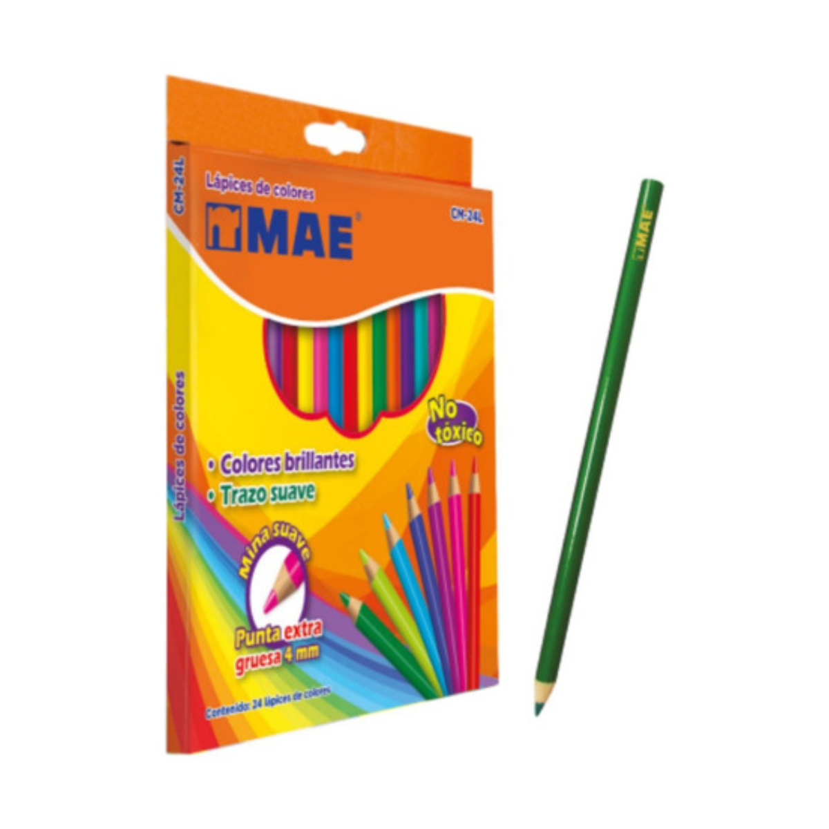 24 Lapices Colores Mae Punta Gruesa Redondos 4mm Dibujo