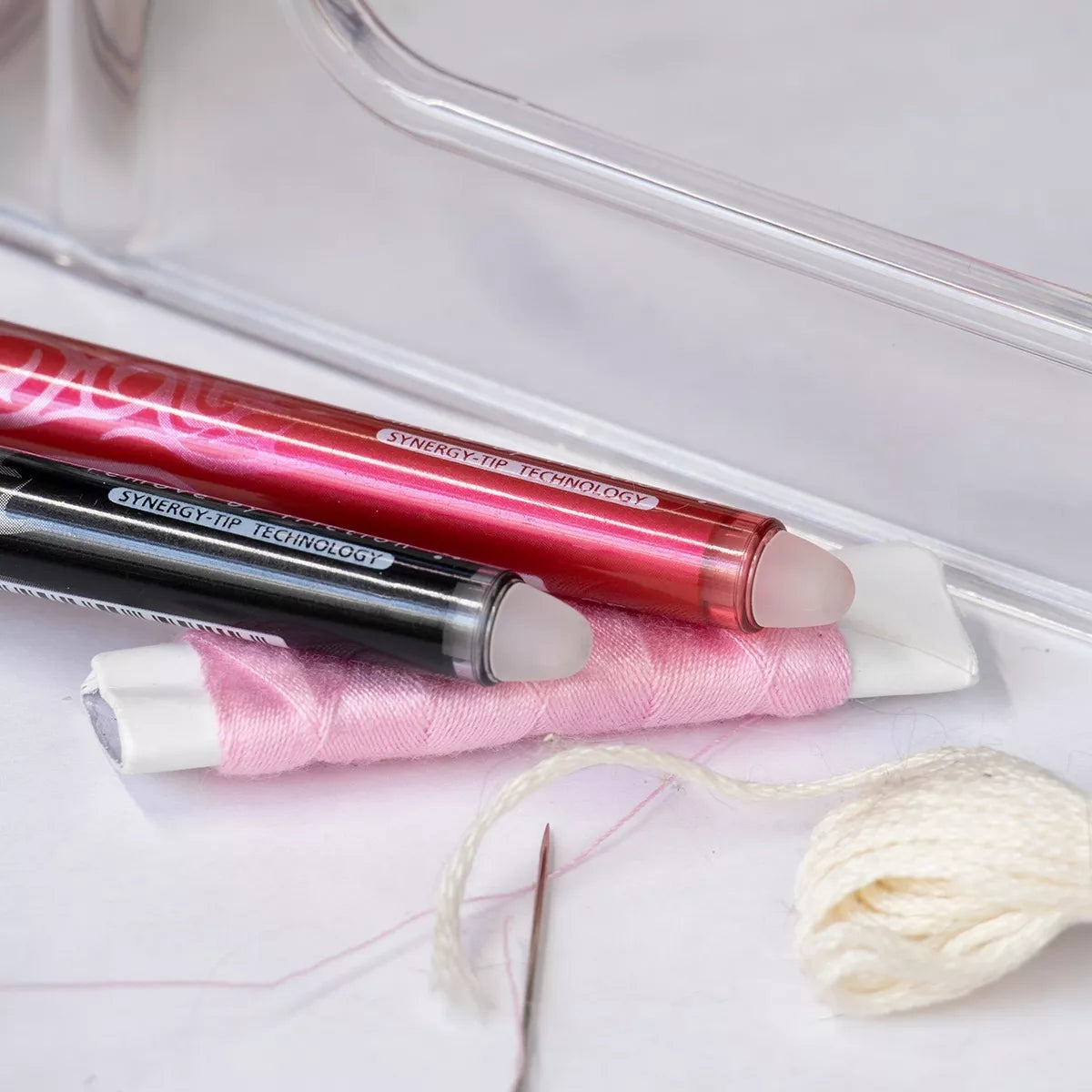 Paquete de 3 lapiceros de punta fina con tinta negra. Rellenable. Tinta gel térmica sensitiva que desaparece con la fricción.