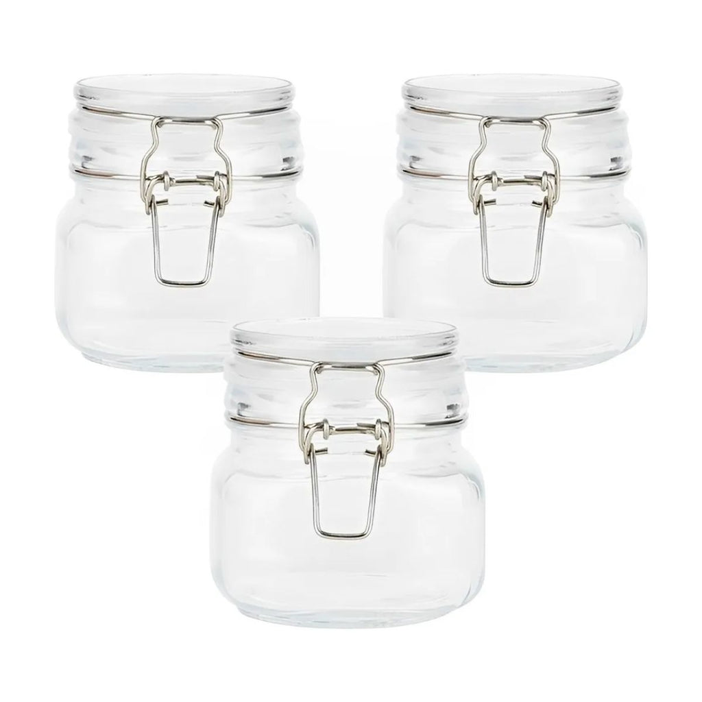 3 Pz Contenedor Vidrio Hermético Clip 500 Ml Frasco Brocal Color Transparente