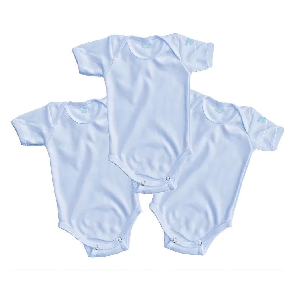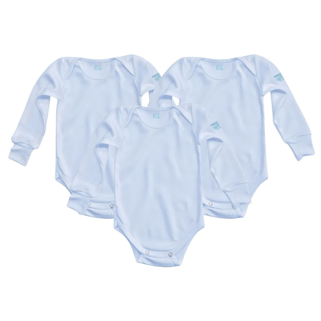 3pz Pañalero Liso Manga Corta Y Larga Ropa Bebe Color Azul Claro