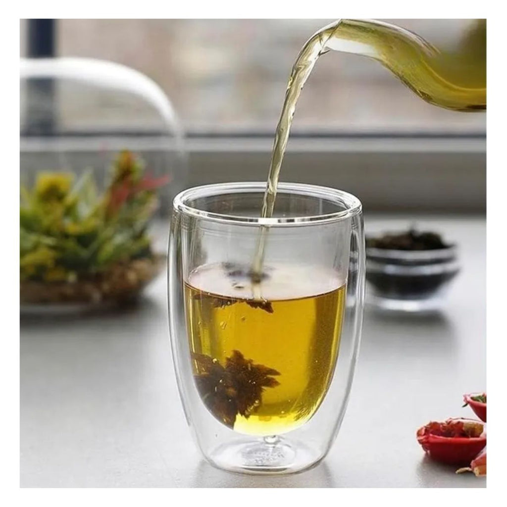 4 Vasos Vidrio Doble Pared Cristal Térmico 360 Ml Multiusos Color Transparente
