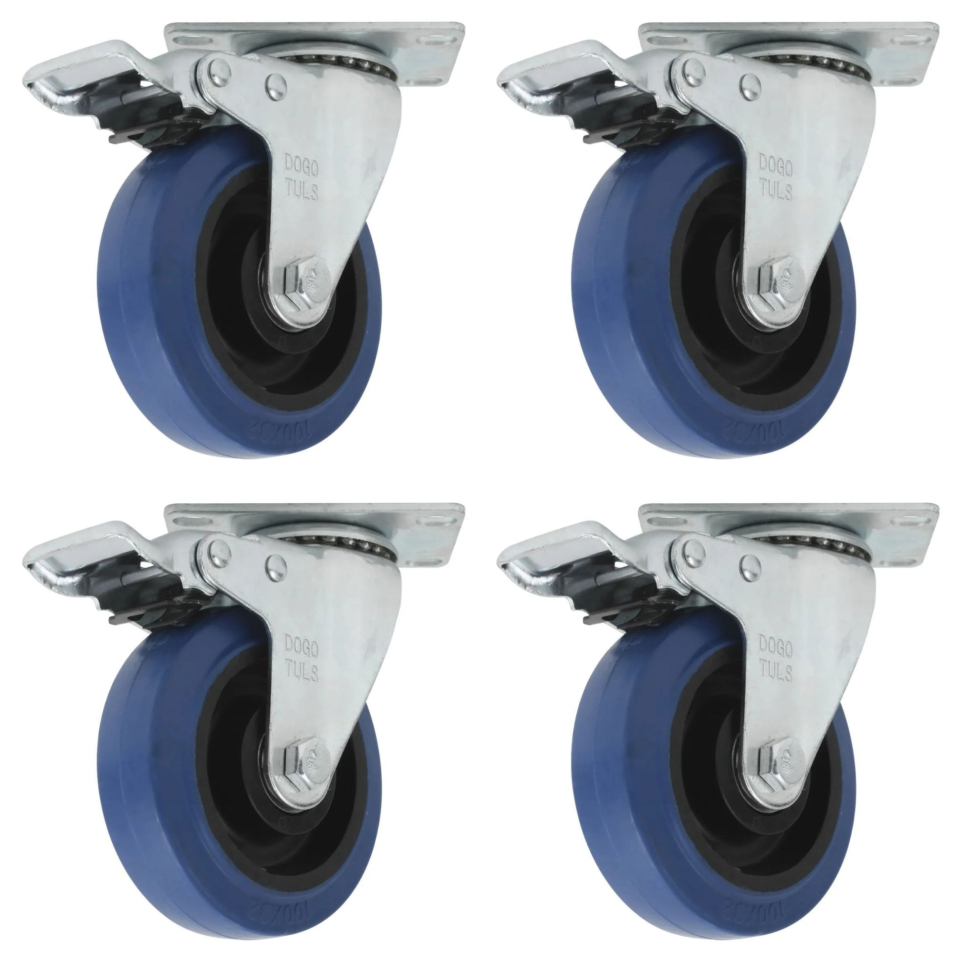 4pz Rodaja Goma Elastica Azul Giratoria Con Freno 3"