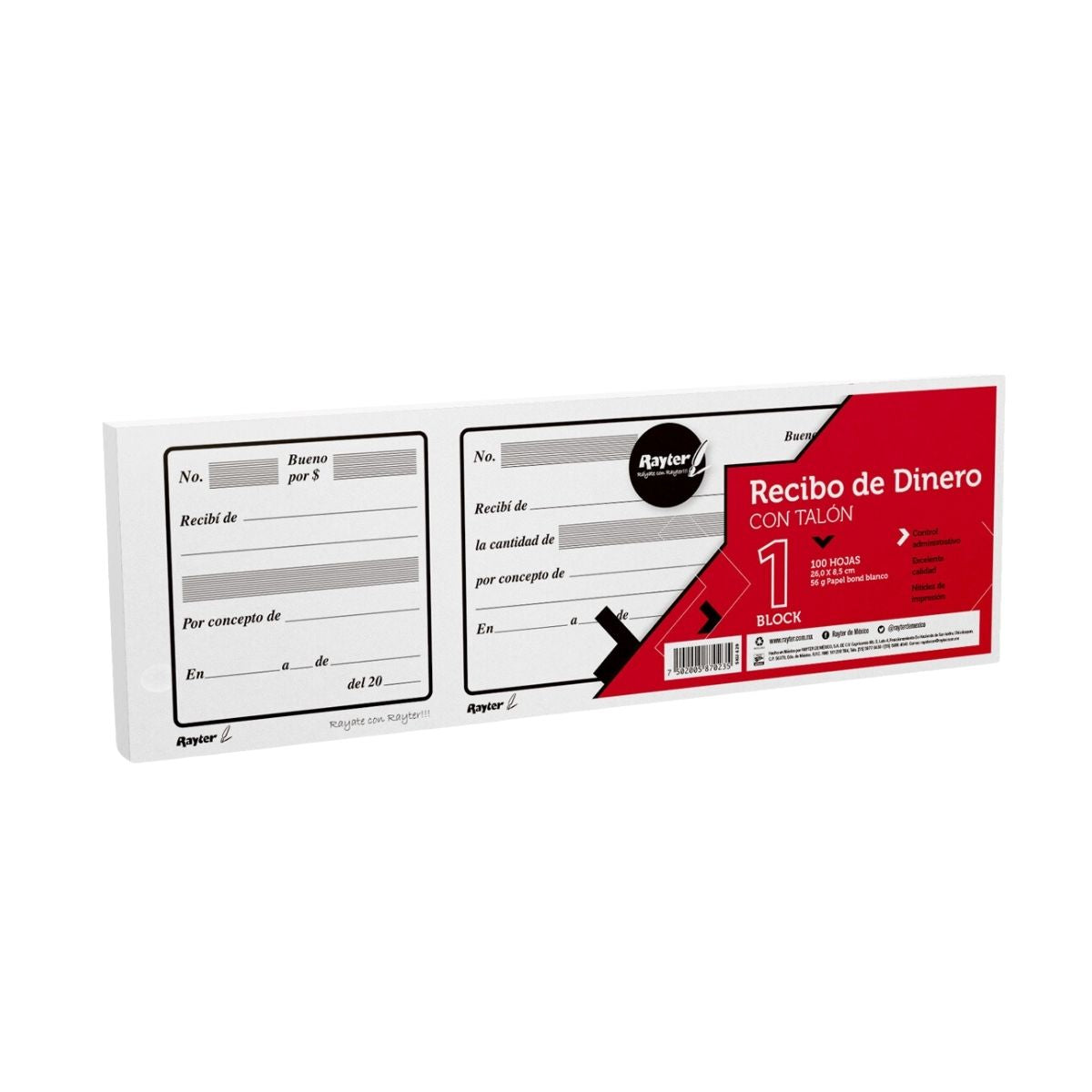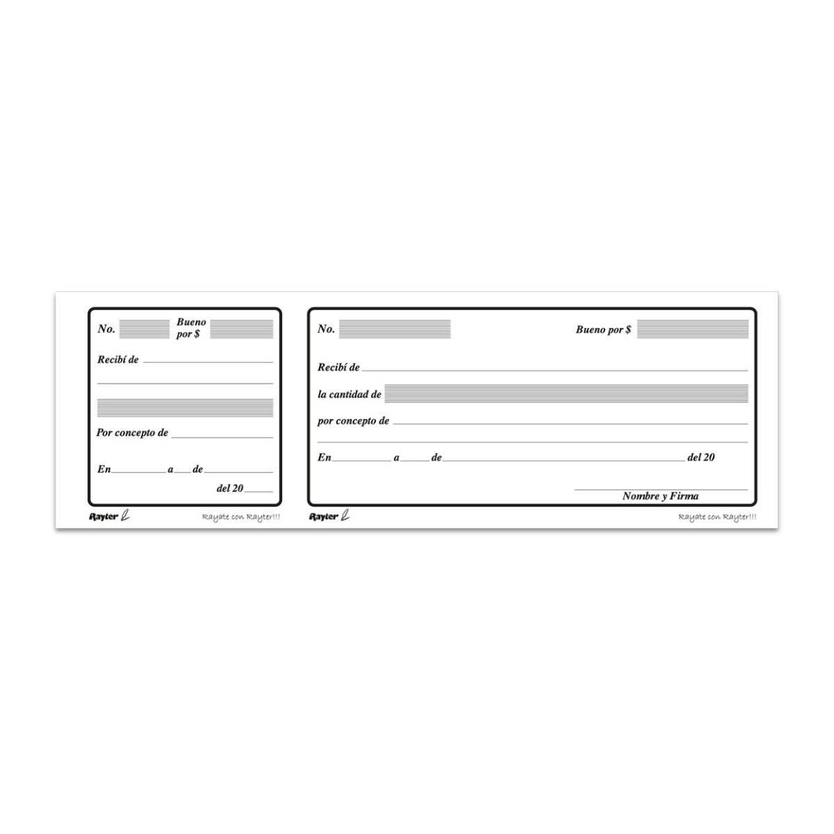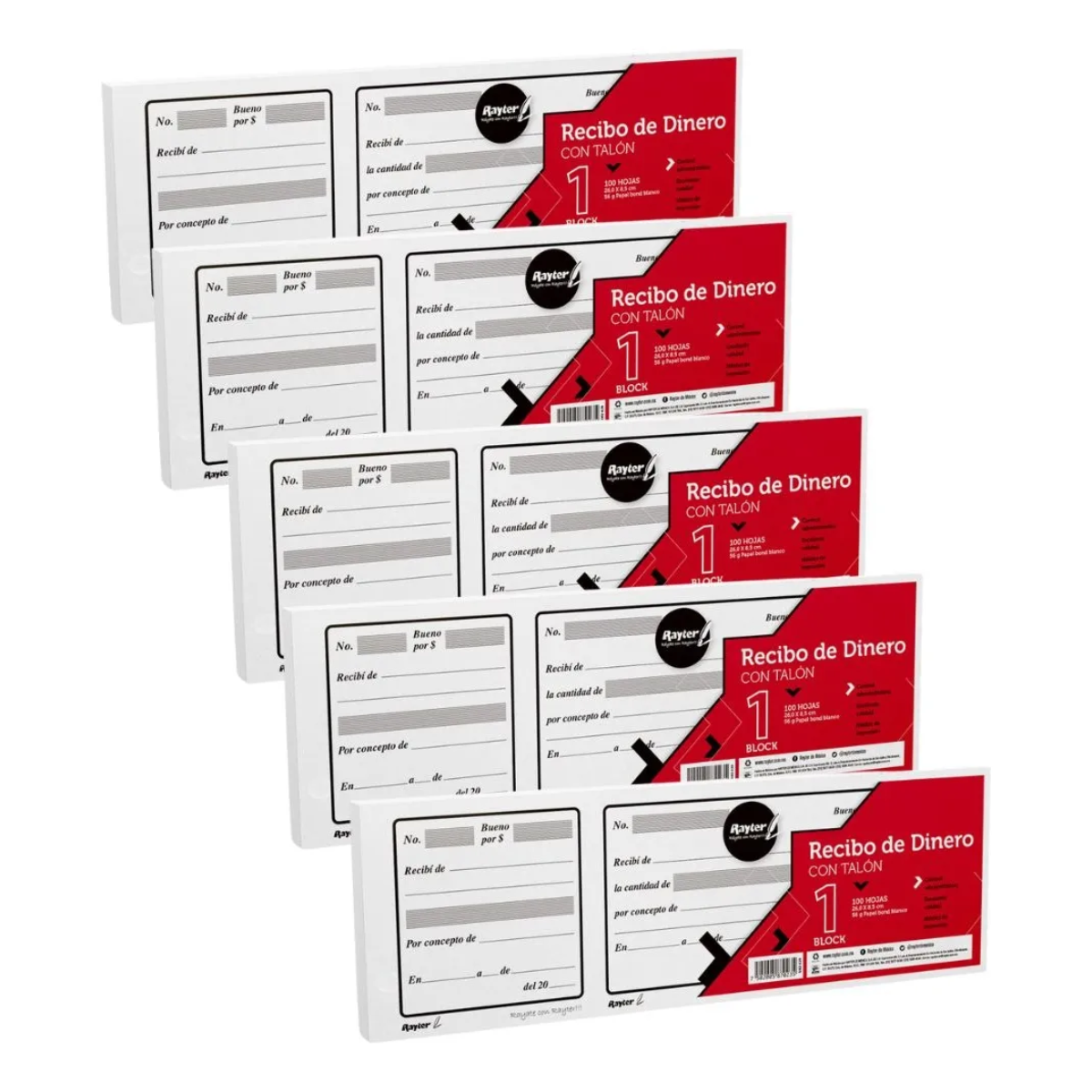 5 BLOCK RECIBO DE DINERO RAYTER LARGO CON TALON 100 H CADA UNO