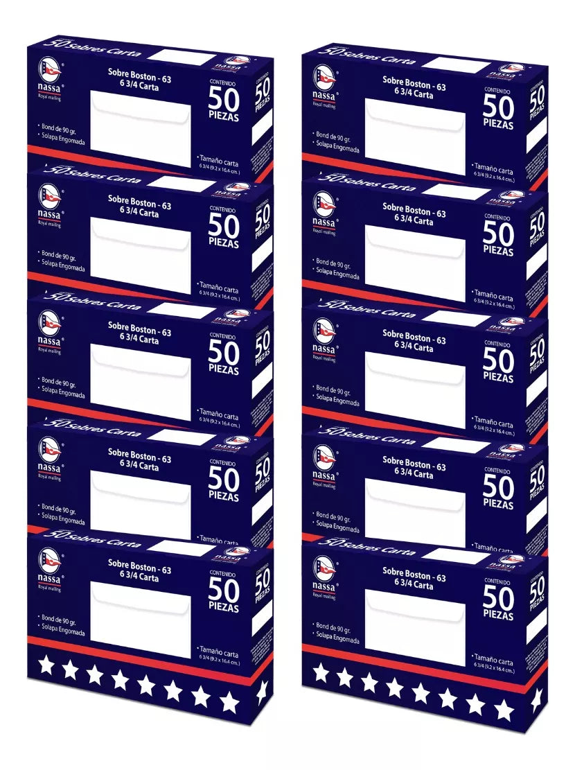 500 Sobres Correspondencia Nassa Blanco Carta 9.2 X 16.4cm