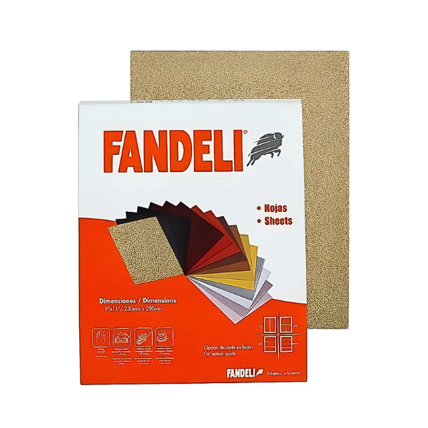 La hoja de lija Fandeli PT87 grano 080 es una opción versátil y resistente para trabajos de acabado, desbaste y preparación de superficies. Su respaldo en tela y mineral de óxido de aluminio garantizan un rendimiento uniforme y duradero, tanto en aplicaciones manuales como con lijadoras orbitales.