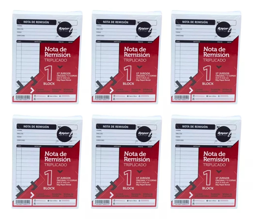 6 Block Nota Remisión Rayter Triplicado 1/4 /17 Juegos C/u