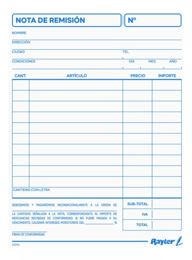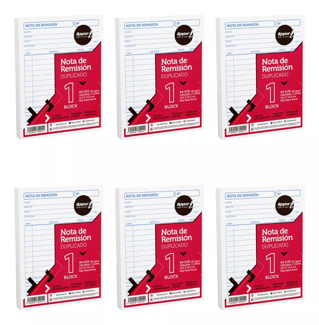 6 Block Notas Remisión Duplicado Rayter 1/4 22 Juegos C/u