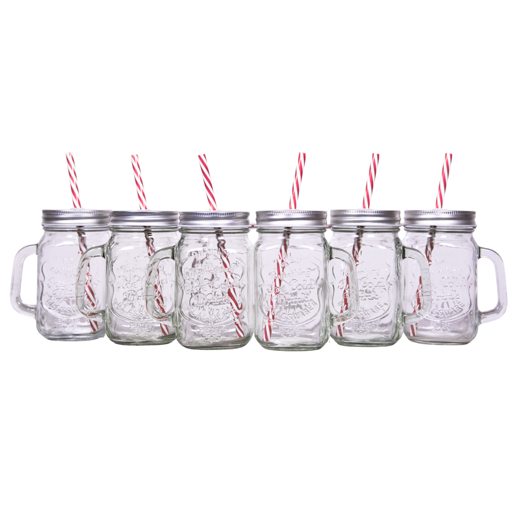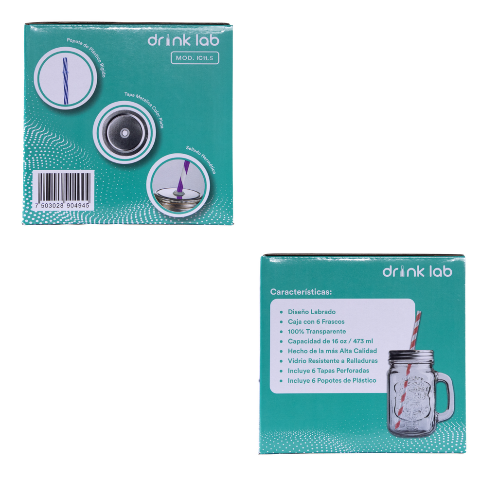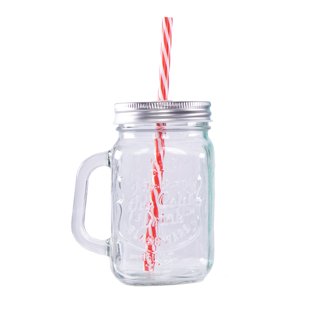 6 Tarros Mason Jar Ice Cold Drink Tapa Plata Y Popote Mayoreo Asa