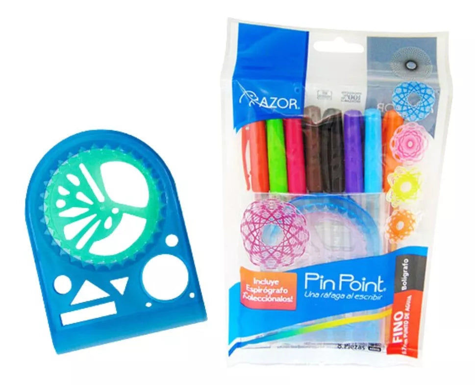 8 Boligrafos Pin Point 0.7mm Espirografo Azor Colores