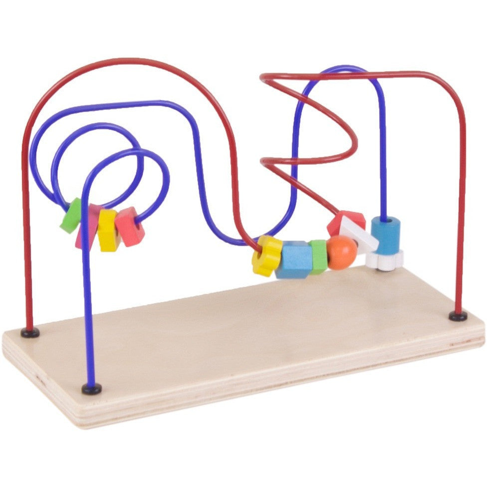 Alambre o laberinto Doble (dos caminos diferentes). Mueve las figuras a través de los alambres y escucha el ruido que hacen al caer las piezas. Ideal para tenerlo en una habitación. Ayuda a desarrollar la psicomotricidad fina, el aprendizaje de colores, la asociación de figuras geométricas, y la imaginación.