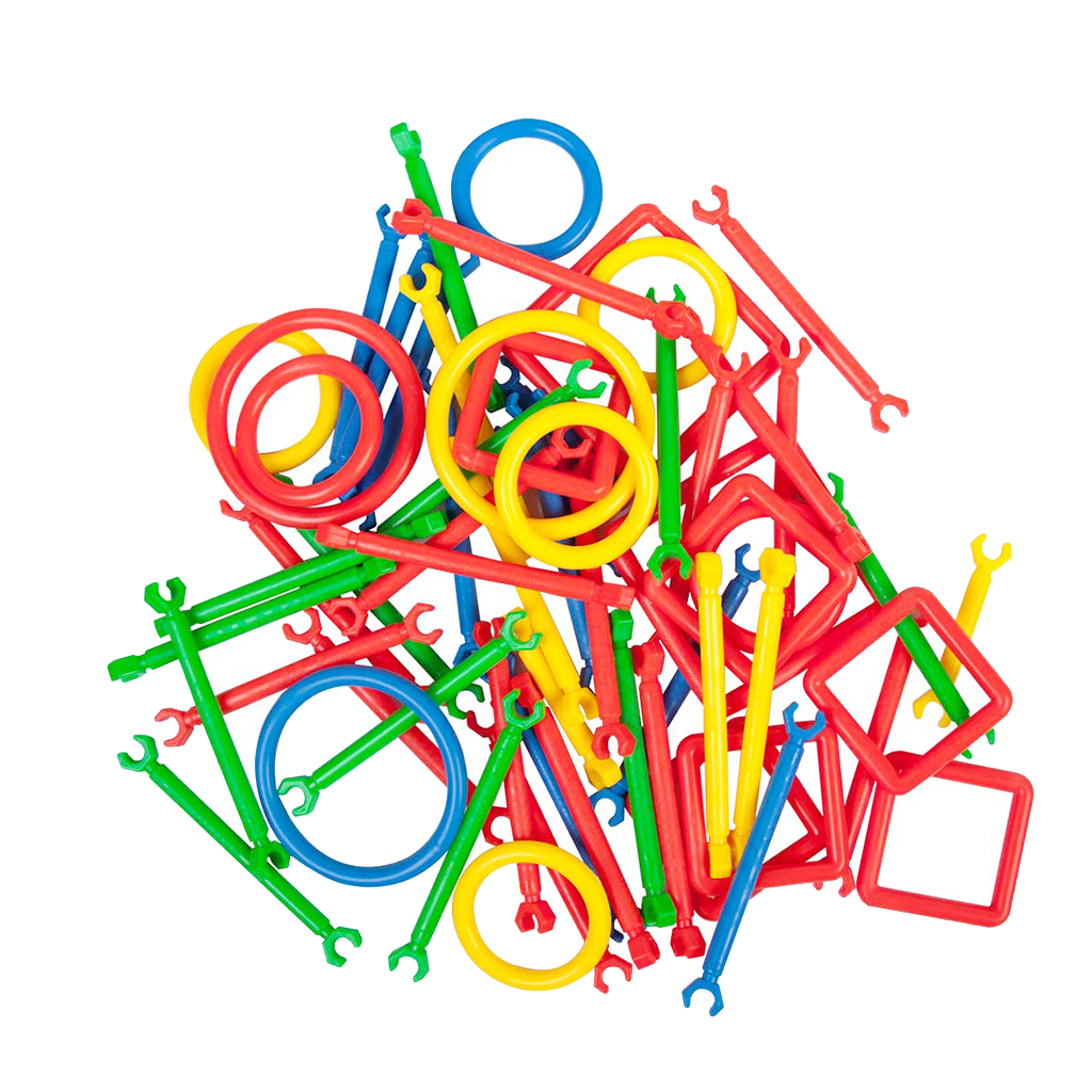 Juego de ensamble con piezas de plástico rígido que se unen entre sí para crear distintas formas. Crea los diseños que tu imaginación te permita. Desarrolla las habilidades estratégicas, la coordinación ojo-mano, la psicomotricidad fina y la imaginación.