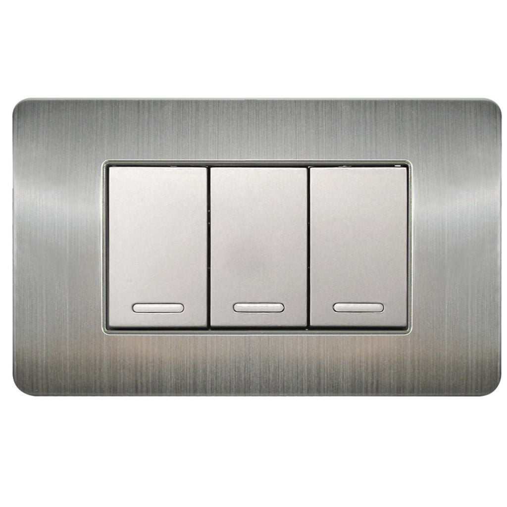 Apagador Triple Argos Placa Acero Inoxidable Versalles Plateado