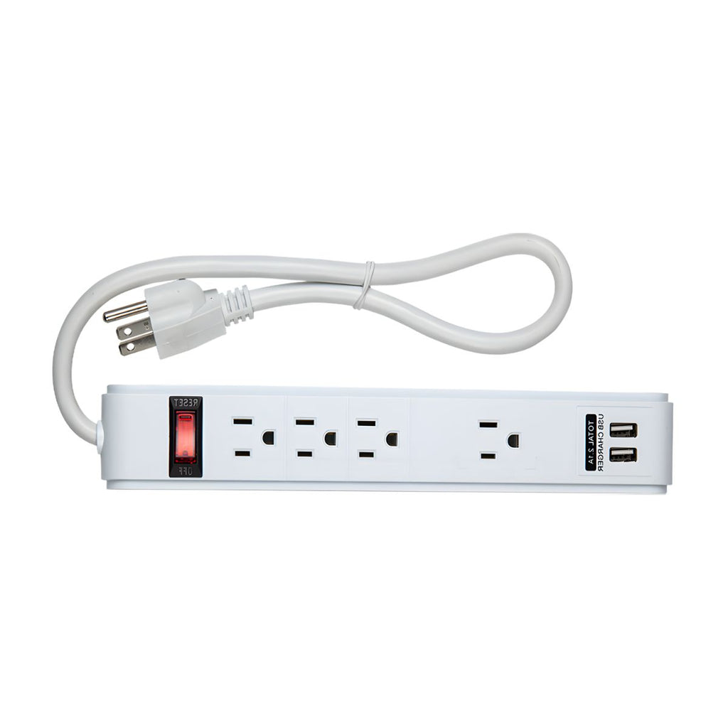 Cuenta con cuatro tomas aterrizadas que permiten conectar equipos de uso cotidiano, además de dos tomas USB que facilitan la carga directa de dispositivos móviles, eliminando la necesidad de adaptadores adicionales. Su diseño compacto y color blanco permiten integrarse de manera discreta en cualquier entorno interior.
