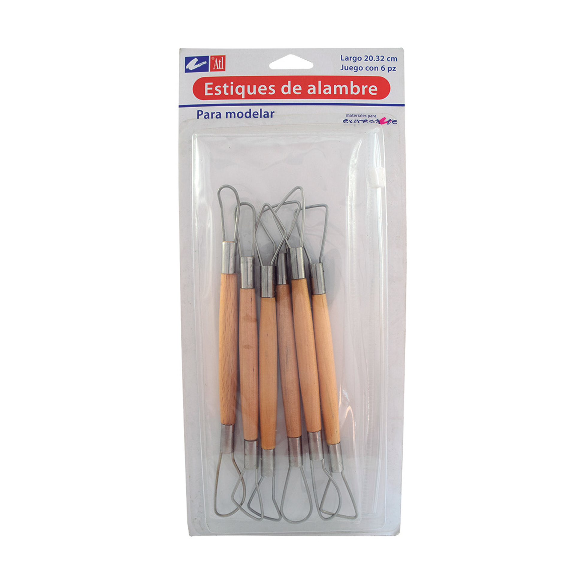 Estiques con mango de madera y puntas de alambre por ambos lados con diferentes formas. Ideal para modelado de arcilla, pasta para modelar y plastilina de escultor