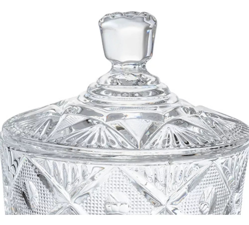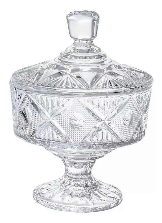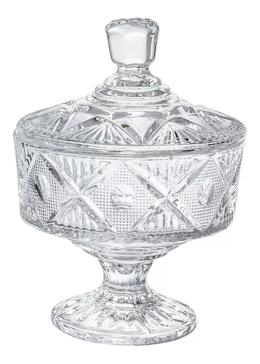 Azucarera Dulcero Bombonera Vidrio Cristal Labrado Tapa