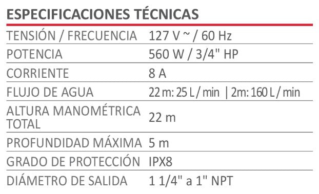 Bomba Sumergible 560 W Aksi 3/4 HP para Agua Limpia