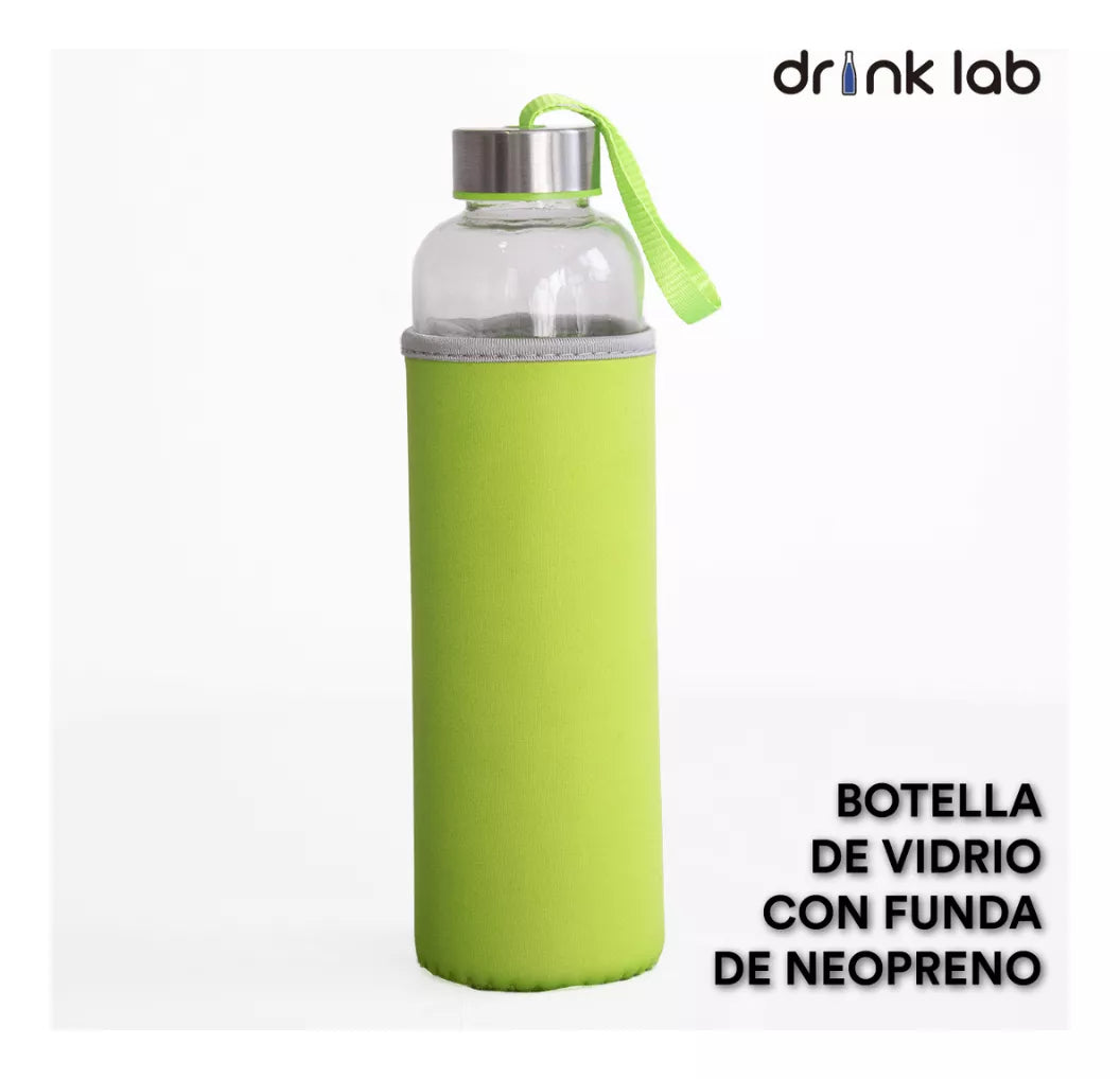 Botella Vidrio Funda Neopreno Agua Sport 600 Ml Resistente