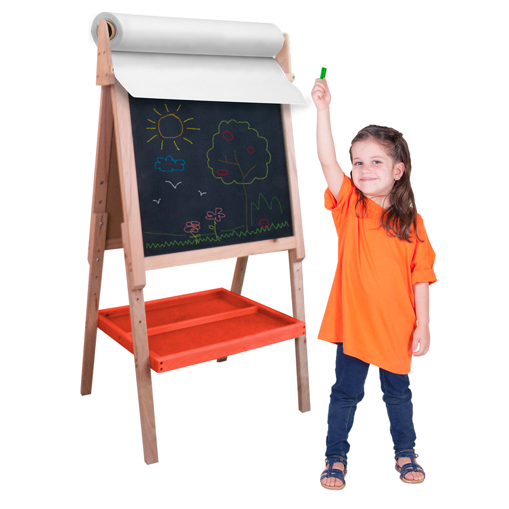 Caballete con 3 funciones en 1 producto. Es un pizarrón para gis por un lado, pizarrón para marcadores por el otro lado, además contiene 1 rollo de papel estraza en el que puedes pintar con acuarelas. Desarrolla tus habilidades artísticas: dibuja y pinta, escribe y borra. *El repuesto del Rollo se vende por separado.