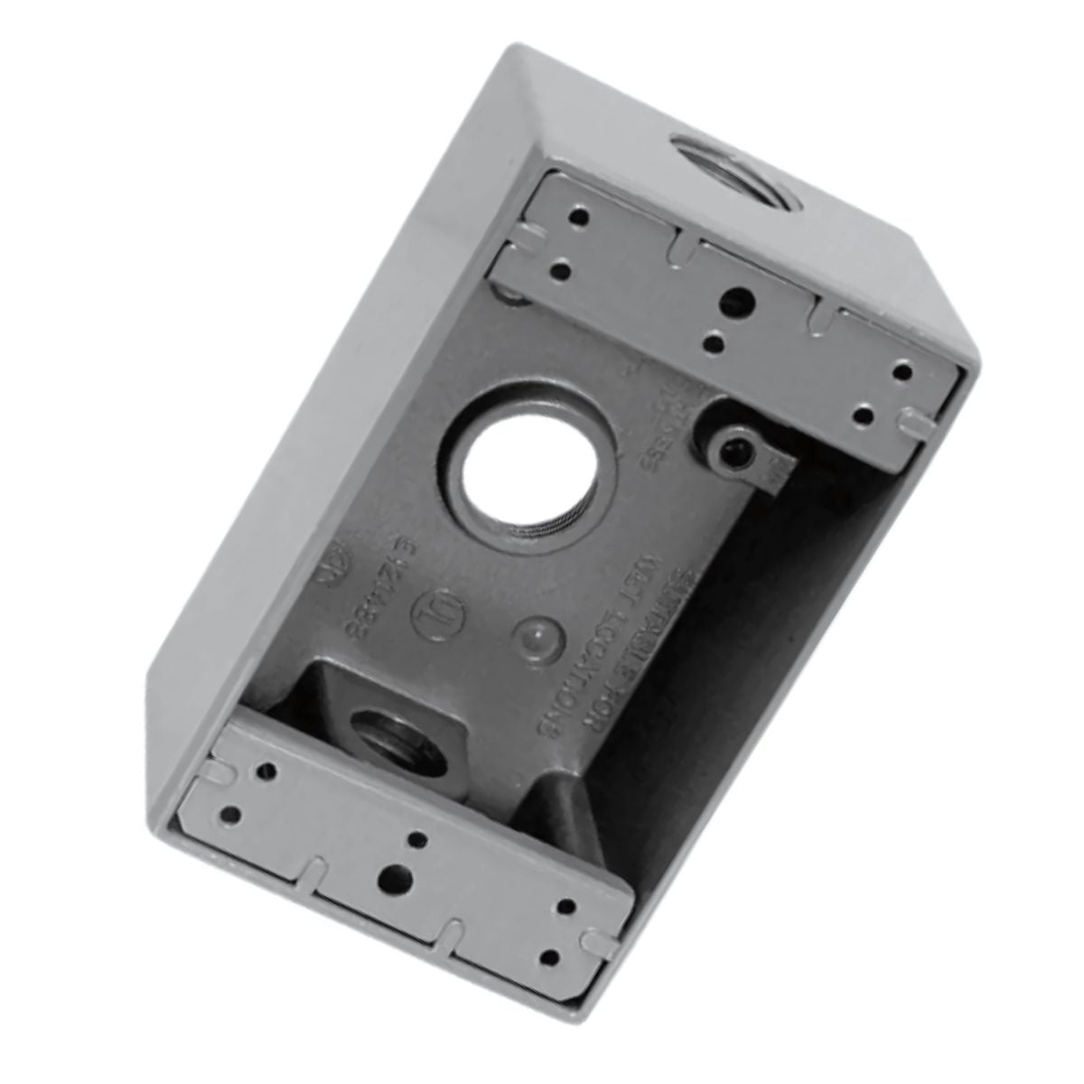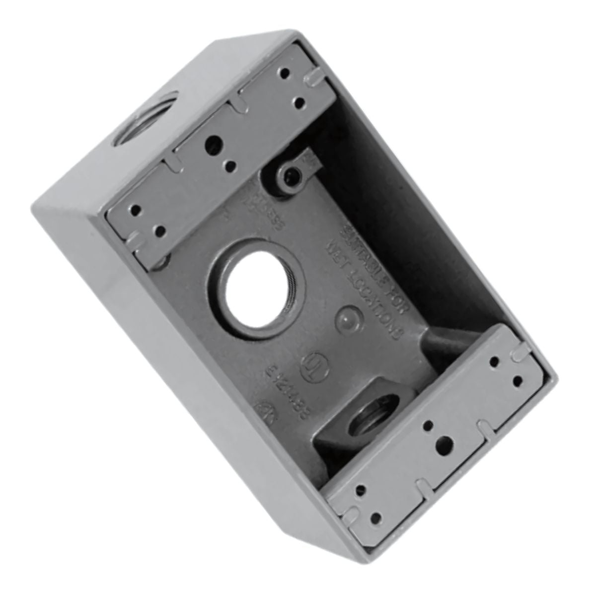 Caja de aluminio resistente a la intemperie, para uso en circuitos de cableado como caja de conexiones o para instalar cualquier tipo de artefacto eléctrico, tanto en lugares húmedos como secos.
