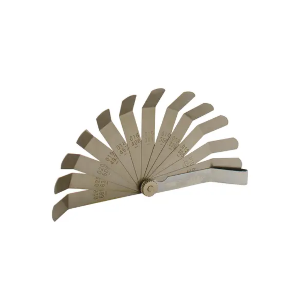 El calibrador Surtek en pulgadas con 12 hojas dobladas a 45° es una herramienta de medición práctica y precisa, diseñada para realizar verificaciones rápidas y ajustes adecuados en piezas mecánicas o componentes industriales.