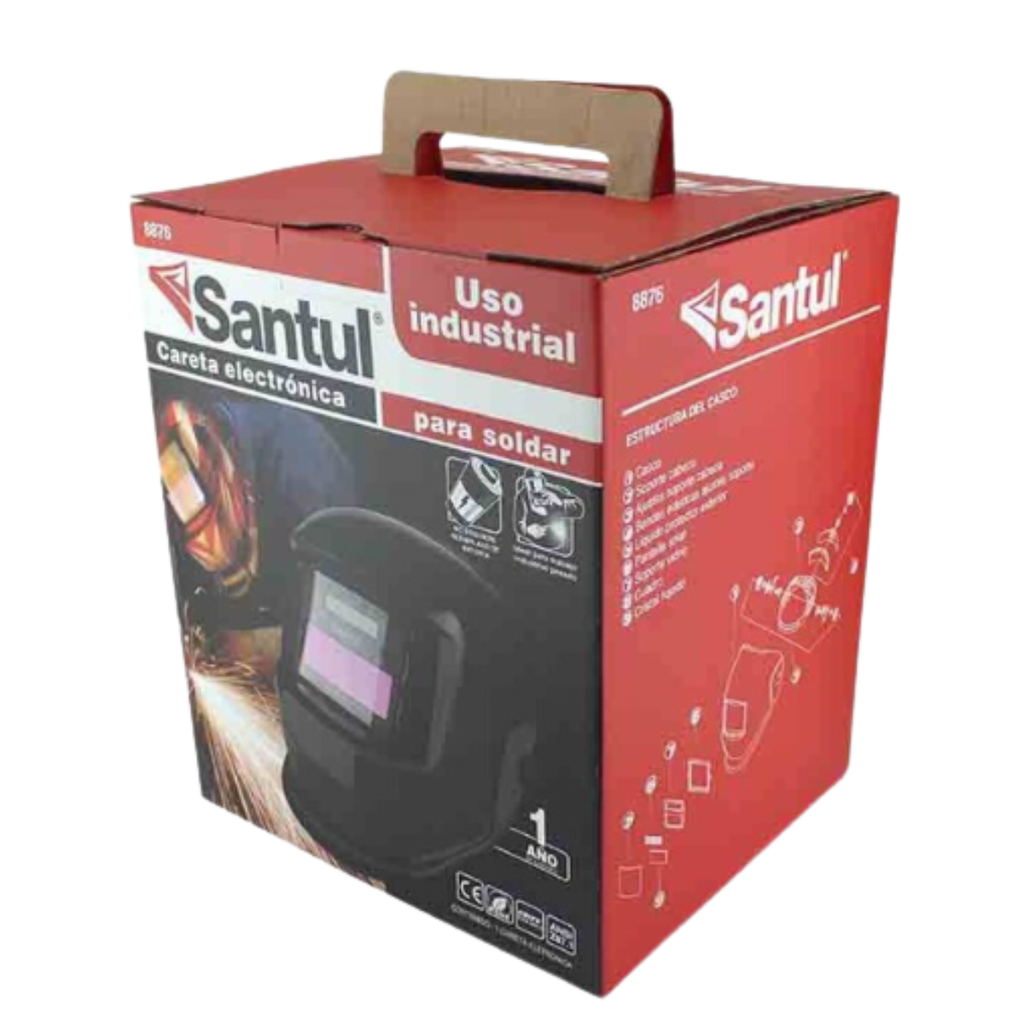La Careta Electrónica Santul 8876 es un casco de soldadura con oscurecimiento automático diseñado para proteger ojos y rostro durante procesos de soldadura. Su diseño busca combinar seguridad, comodidad y practicidad para trabajos industriales o en taller.