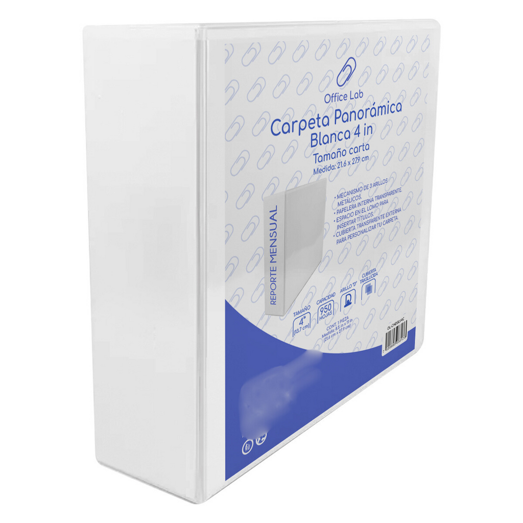 La Carpeta 4In Office Lab Tamaño Carta con Ventana Herraje O Color Blanco es una herramienta indispensable para mantener tus documentos en orden y protegerlos eficazmente. Con un diseño elegante y materiales de primera calidad, esta carpeta es perfecta para su uso en cualquier entorno profesional, académico o doméstico.