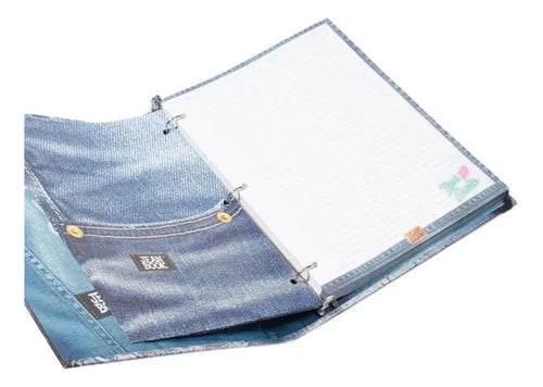 Carpeta Jean Book de portada rígida en tamaño profesional, incluye 100 hojas decoradas de 68 gr. Además puedes utilizar el resorte que incluye como sistema de cierre para que todos tus documentos importantes siempre estén seguros. Puedes encontrar diferentes diseños únicos y diferentes.