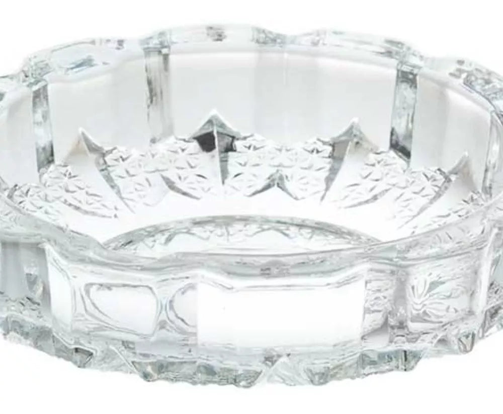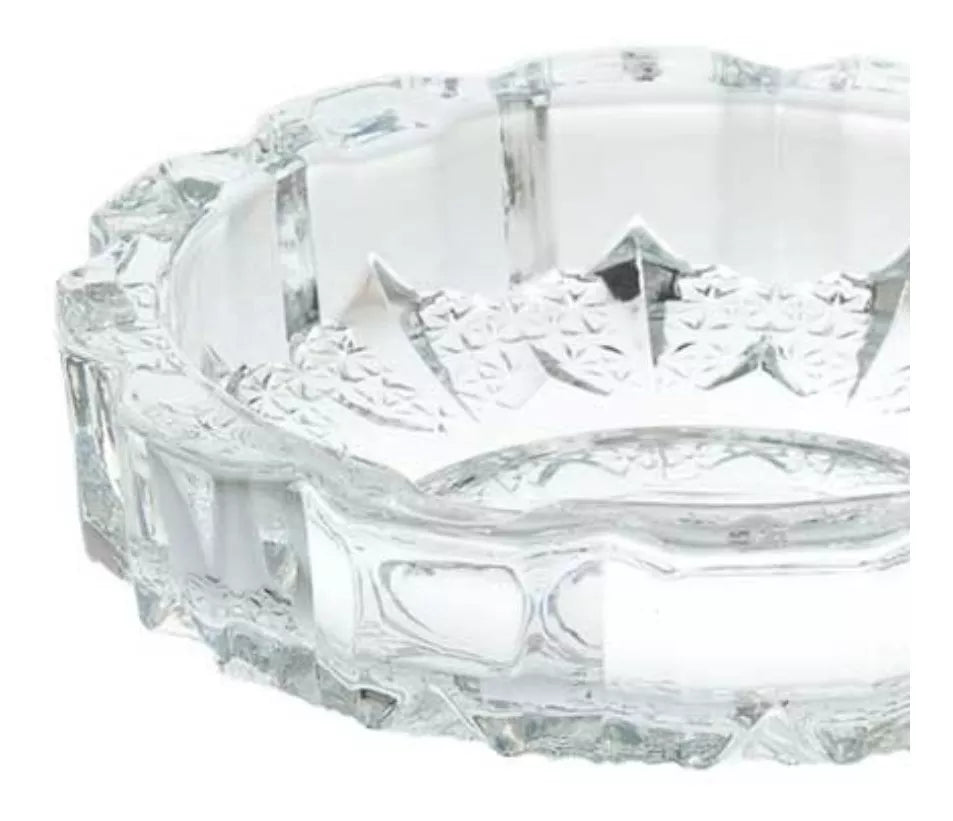 Cenicero Vidrio Redondo Cristal Cortado Labrado Grande