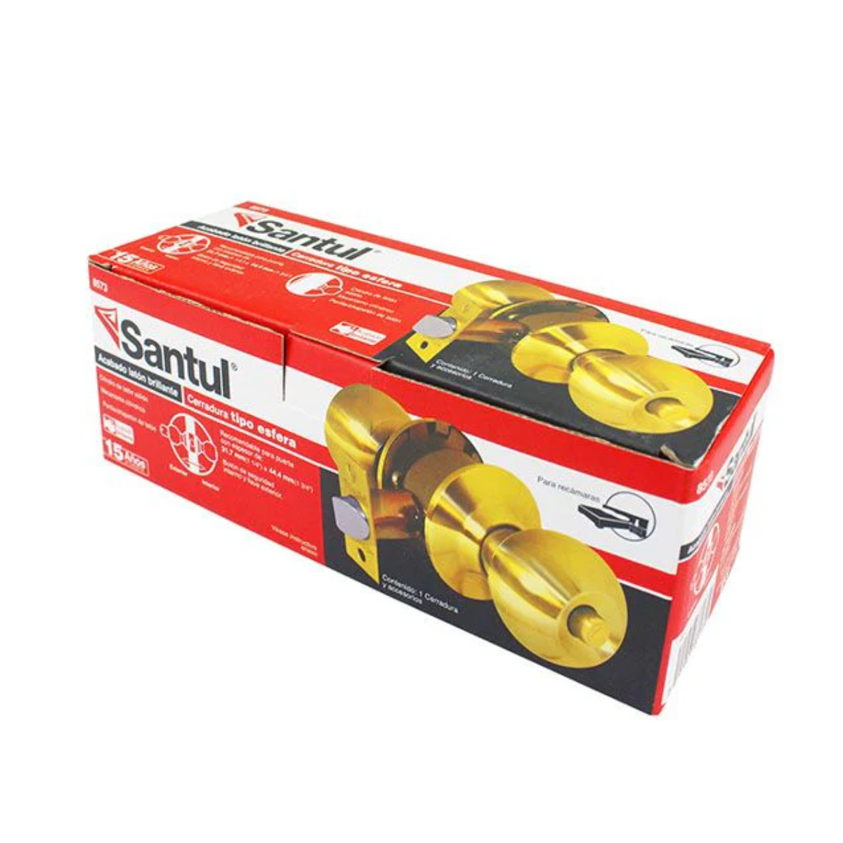 La Cerradura de Pomo Tipo Esfera Santul en acabado latón brillante es ideal para puertas de recámara, ya que ofrece privacidad y un funcionamiento suave y silencioso. Su diseño clásico tipo esfera brinda un agarre cómodo y una apariencia elegante que combina con cualquier estilo de decoración.