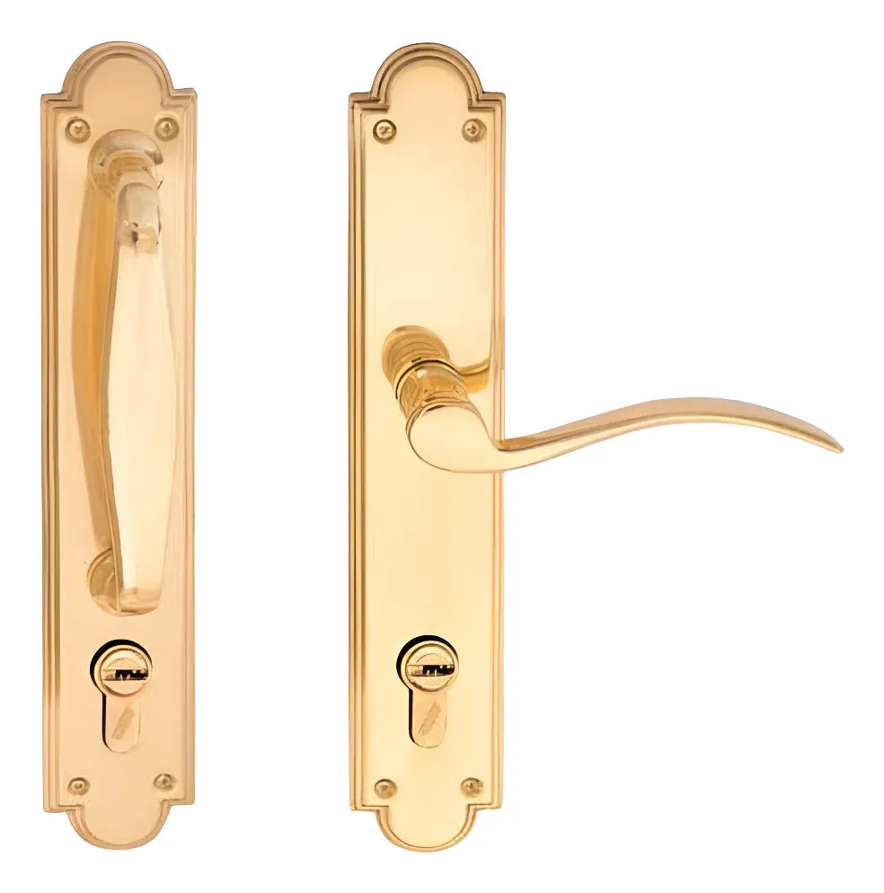 • Placa, manilla y bocallave de latón sólido.