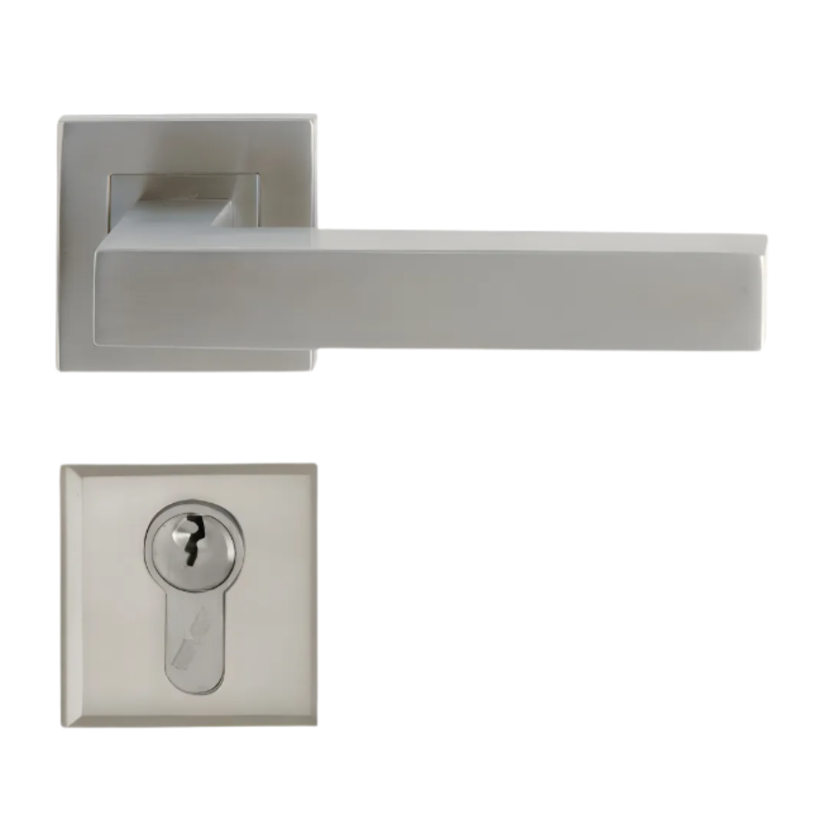 • Placa, manilla y bocallave de acero inoxidable.