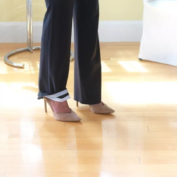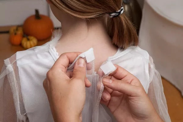 2. Despega la cinta protectora y presiona la cinta sobre la tela.