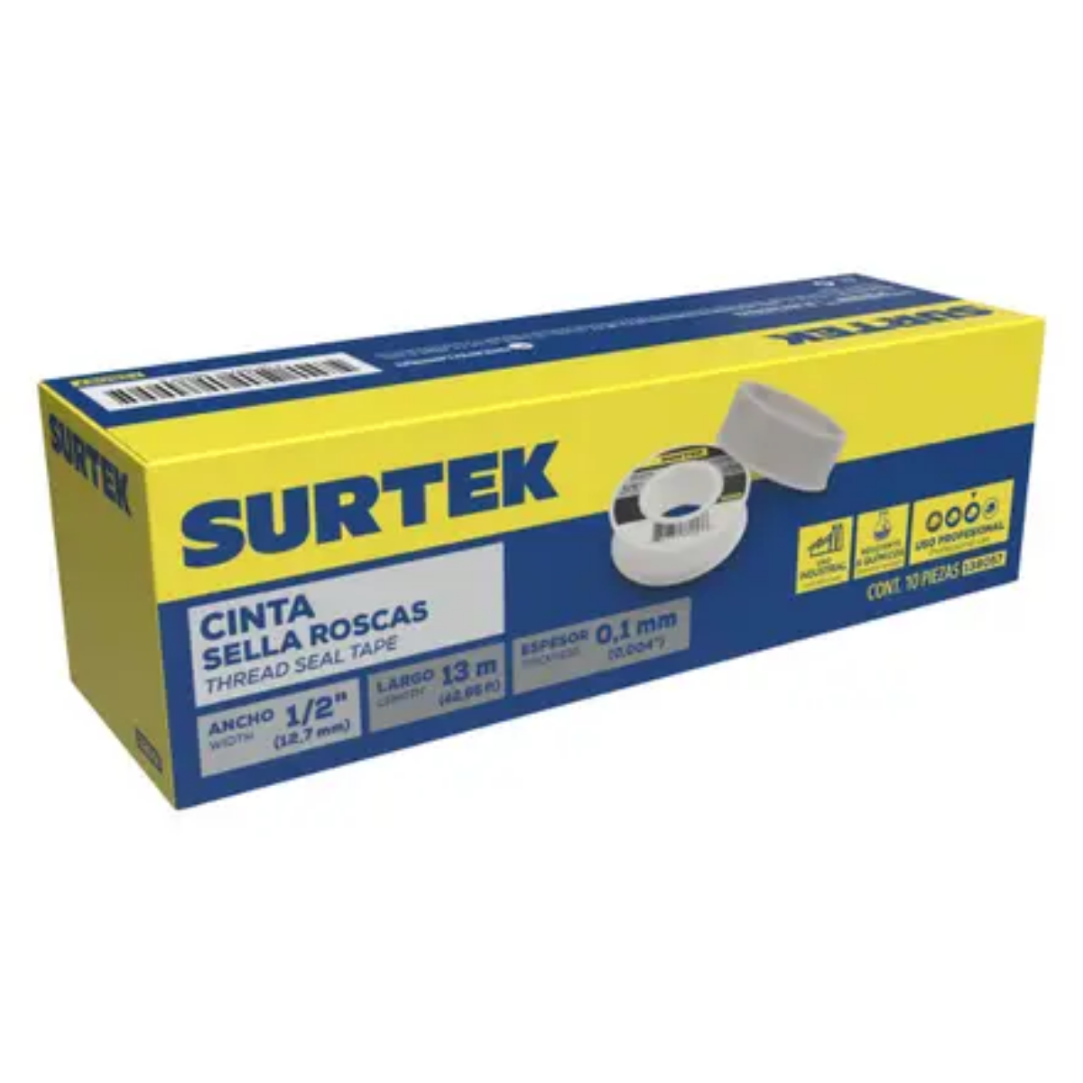 Con la cinta sella roscas Surtek 138057, obtendrás seguridad, eficiencia y durabilidad en cada conexión. Asegura tus instalaciones hoy y evita fugas futuras.
