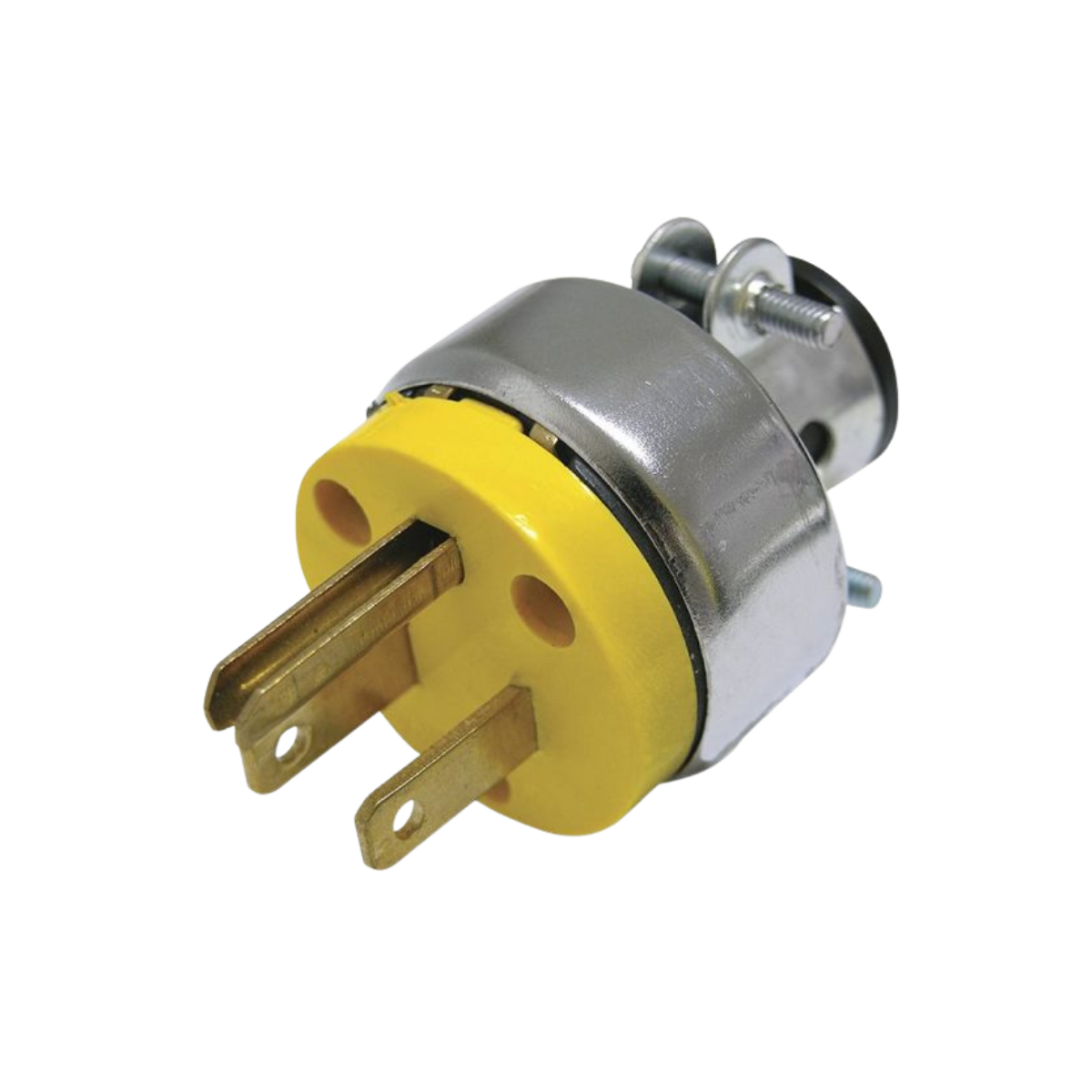 Clavija blindada Surtek con abrazadera, aterrizada y de color amarillo, diseñada para brindar una conexión eléctrica segura y confiable. Su cuerpo resistente ayuda a proteger los conductores, mientras que la abrazadera permite una sujeción firme del cable, reduciendo riesgos por jalones o movimientos. Ideal para instalaciones eléctricas y reparaciones, en presentación de paquete con 25 piezas.