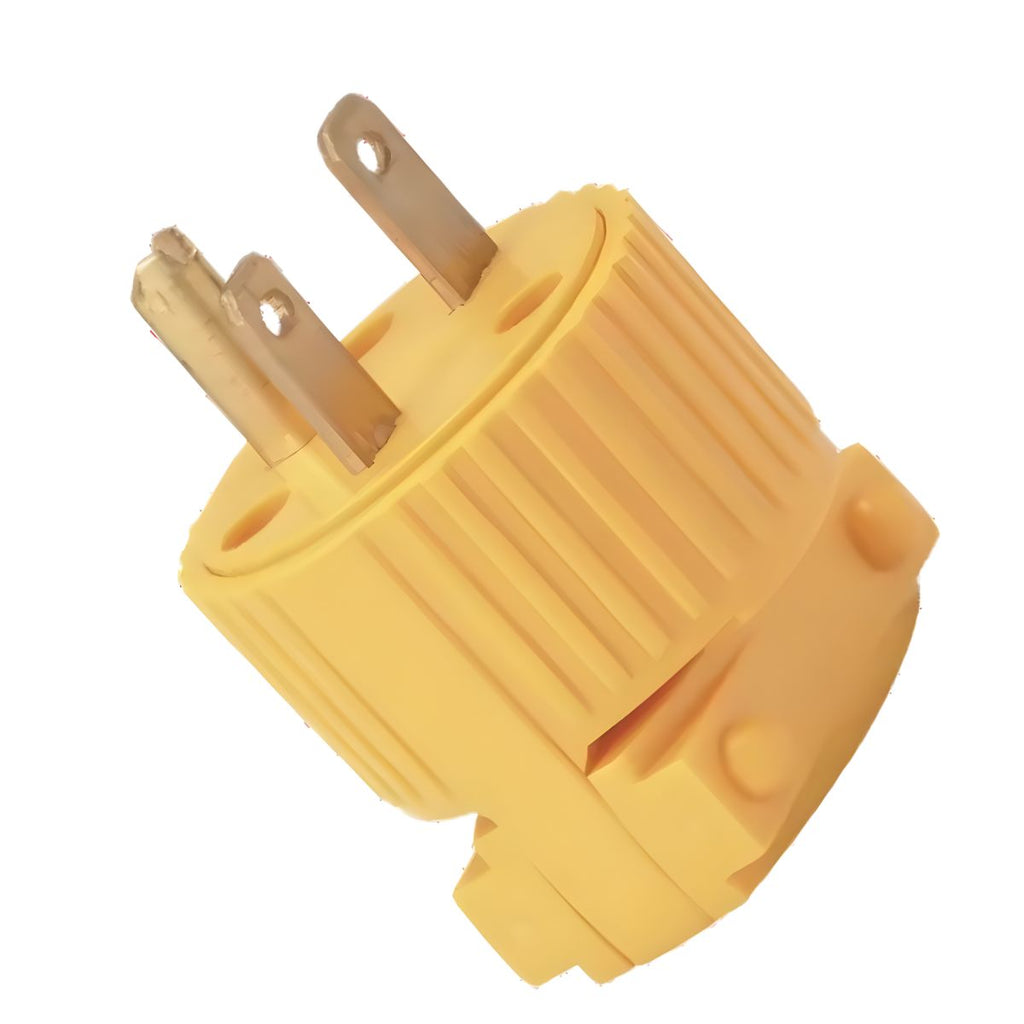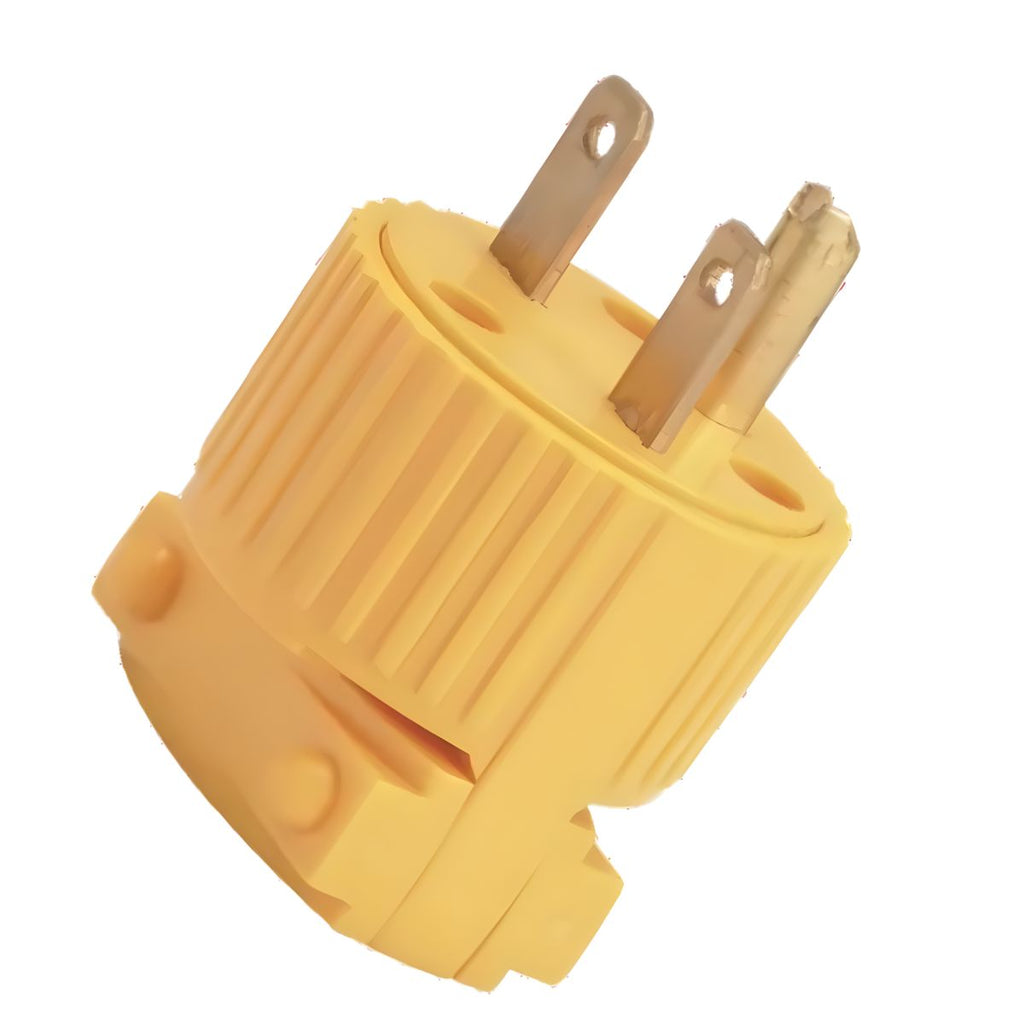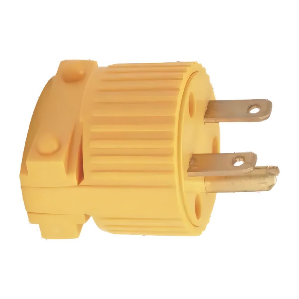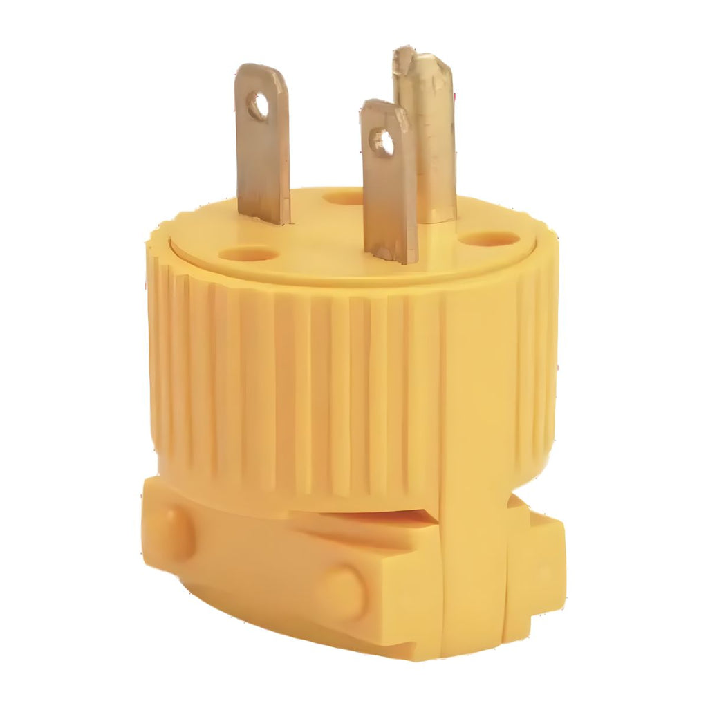 Clavija plástica aterrizada, fabricada con un enchufe de 3 polos y cuenta con una abrazadera para mayor estabilidad del cable que se le ha conectado.
